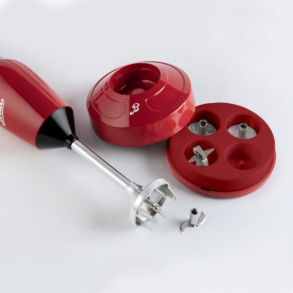 Le socle et le réservoir à lames complètent le design et la fonctionnalité du mixeur plongeant Icon et en font un accessoire idéal dans la cuisine. Les lames ne sont pas affûtées et sont facilement amovibles, ce qui vous permet de préparer facilement toutes sortes de recettes.