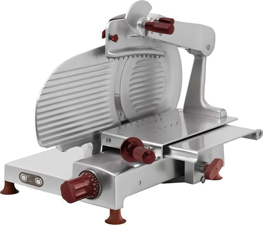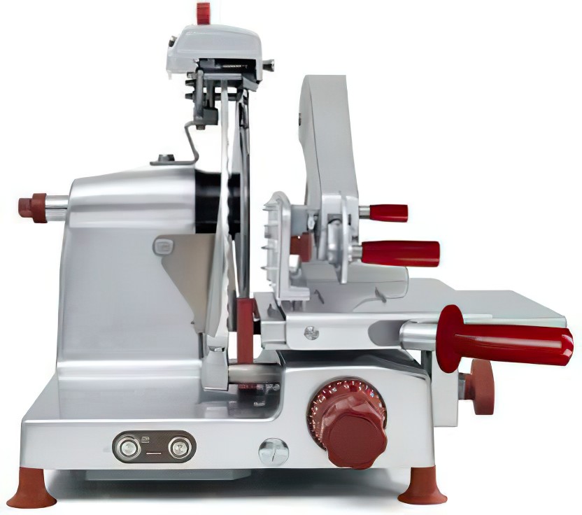Le modèle idéal pour couper le jambon et les saucisses. Un grand porte produit et une capacité de coupe considérable lui permettent de traiter tout type de saucisse. Double étagère coulissante pour faciliter le déplacement du produit vers la lame. Manche à viande en techno polymère amovible et lavable au lave-vaisselle.