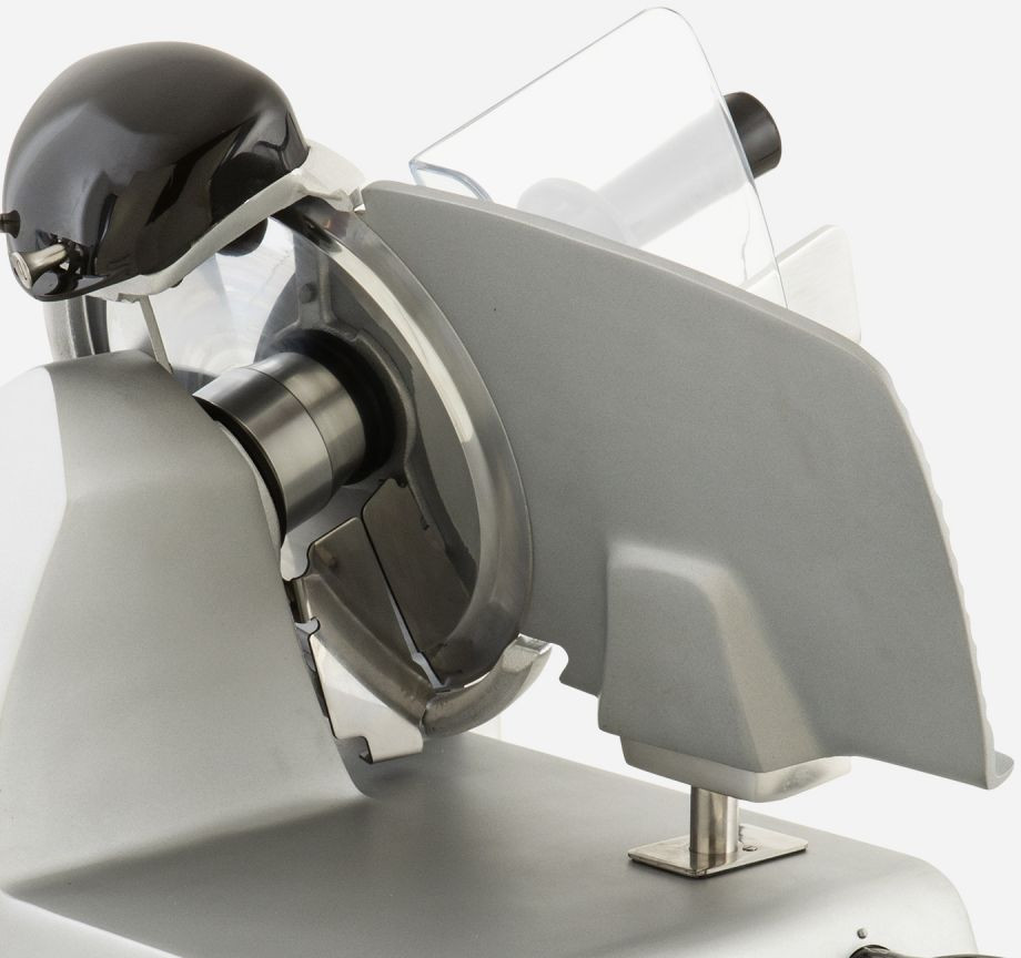 Les trancheuses Red Line disposent toutes d’un aiguiseur incorporé qui permet un aiguisage correct de la lame. Le positionnement se fait manuellement, simplement en levant et en tournant l’aiguiseur. Sans réglage manuel, une seule position est prévue garantissant toujours l’inclinaison parfaite pour un aiguisage optimal.