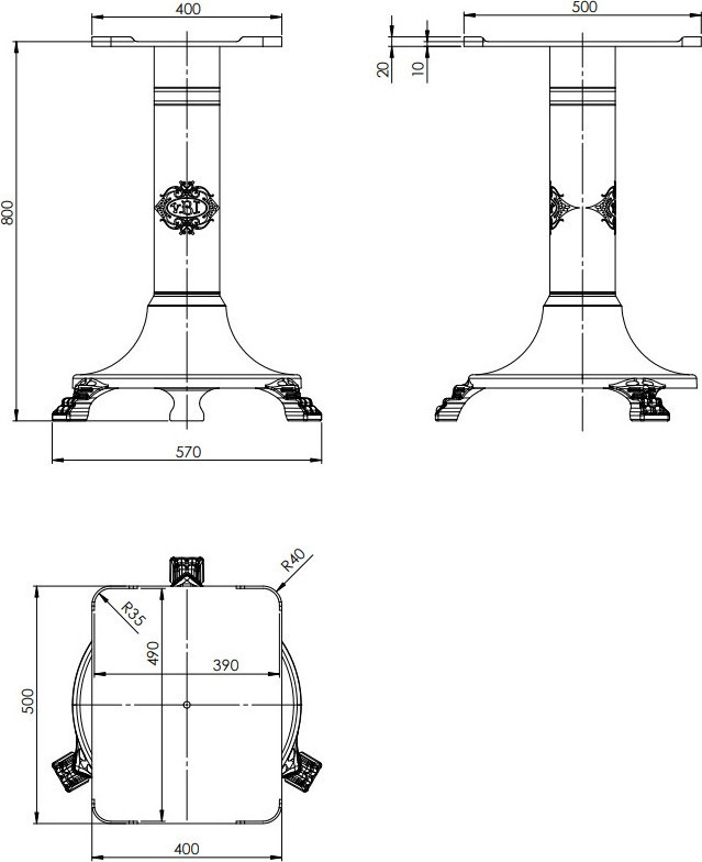 Hauteur 800 mm Longueur 500 mm Largeur 400 mm Poids: 65 kg